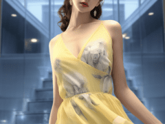 Midjourney 黄色连衣裙美女关键词prompt分享