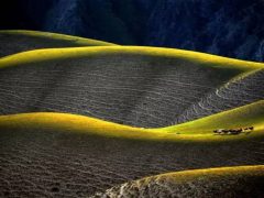 《双马图》中马的轮廓以线塑形,线条勾勒得准确、细劲、洒脱,显示出作者深厚的线描功力。马体的各部位以浓淡墨晕染,在层层笔墨深浅变化中表现出其体积感、质感和明暗关系。